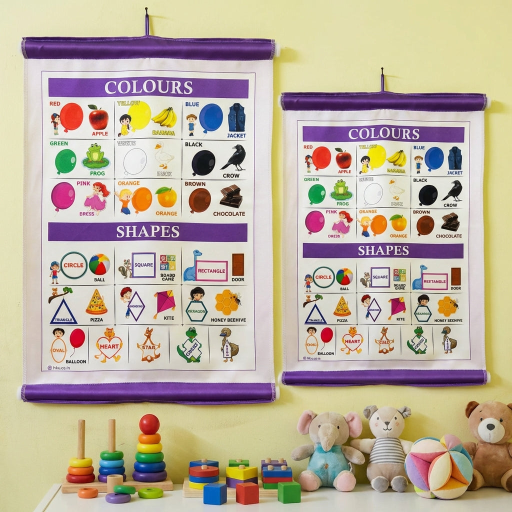 Make early learning simple, colorful, and engaging with the HKU Colours & Shapes Educational Wall Chart. Specially designed for toddlers and preschoolers, this chart helps children easily recognize basic colours and shapes through bright illustrations and relatable objects.