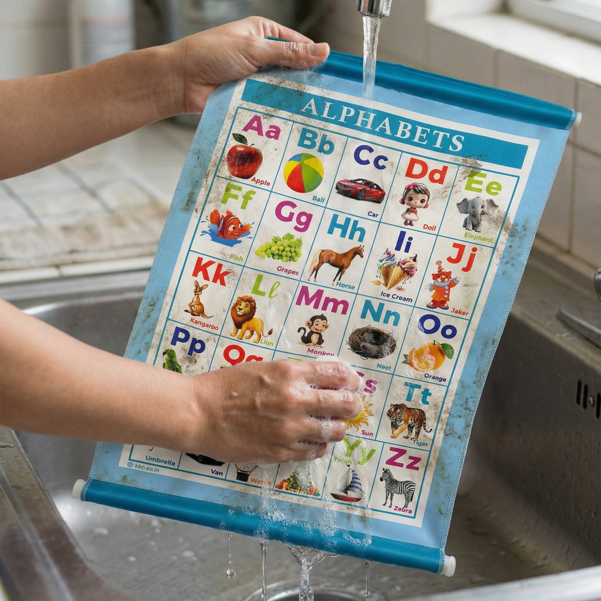 Make early learning fun, safe, and engaging with this Alphabet Learning Cloth Chart, specially designed for toddlers and preschoolers. Featuring bright, colorful illustrations for each letter from A to Z, this chart helps children recognize alphabet in an easy and playful way.